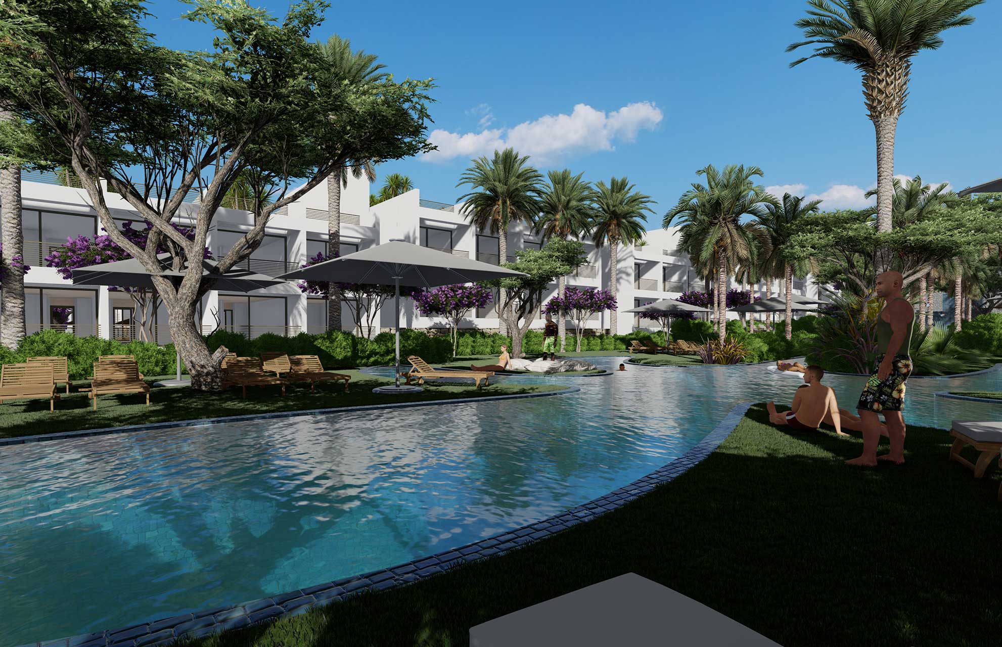Das Projekt bietet eine Mischung aus Studios, Apartments, Duplex-Penthouses und Beachfront-Villen, eingebettet in tropische Gärten mit Pools, Lagunen und direktem Zugang zum Strand.