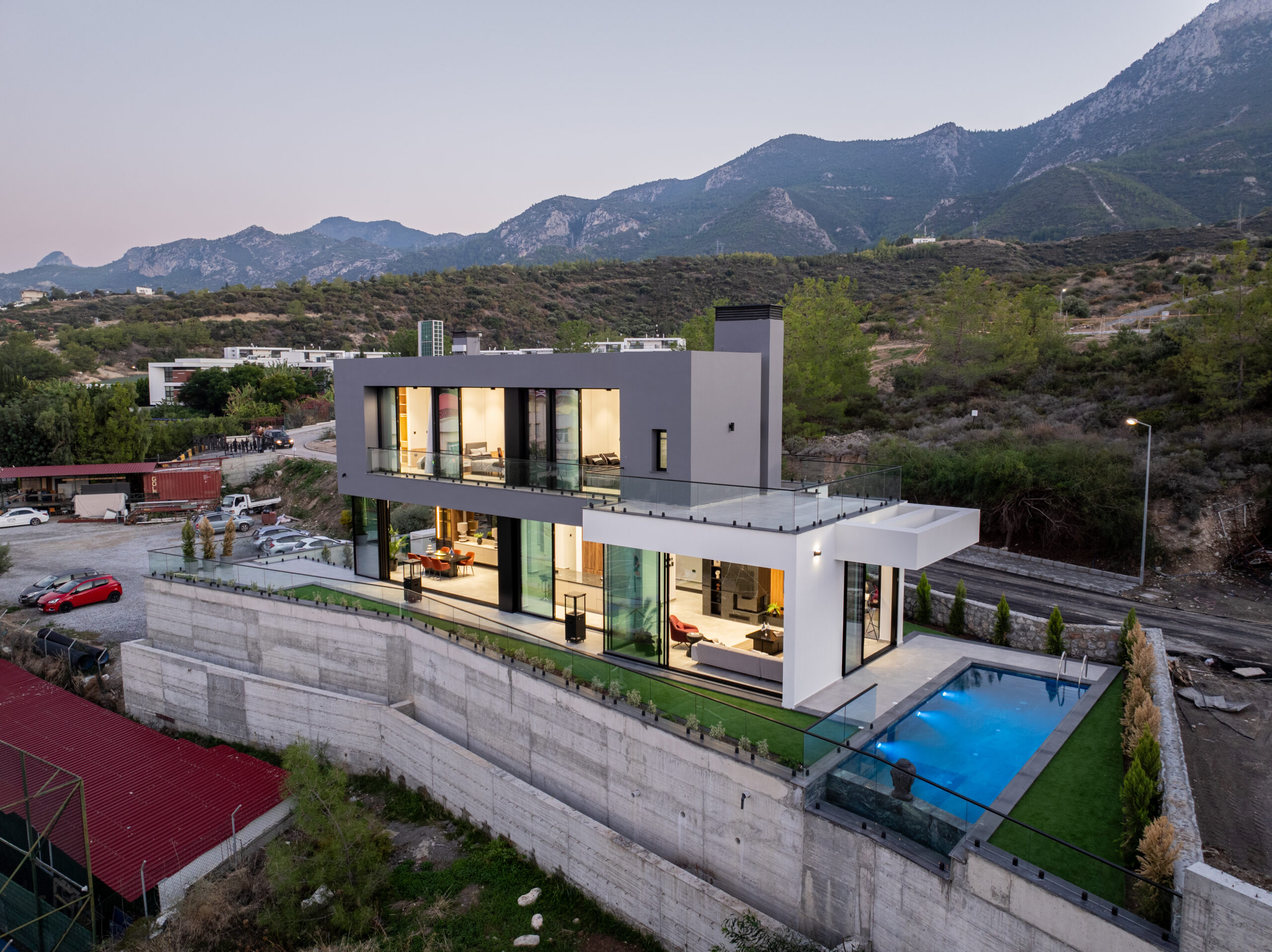 Das Projekt umfasst nur 5 luxuriöse Villen, die modernes Design, Privatsphäre und spektakulären Meer- und Bergblick vereinen. Alle Villen haben Turkish Title Deeds und bieten großzügige Grundrisse, Infinity-Pools, Smart-Home-Technologie und eine hochwertige Ausstattung – ideal für anspruchsvolle Käufer, die Luxus, Ruhe und Nähe zur Stadt kombinieren möchten.