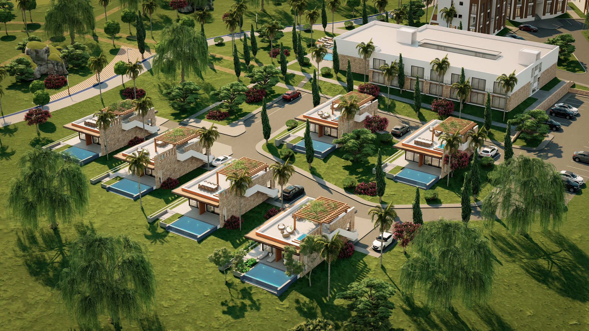 Das Projekt kombiniert ruhiges Wohnen mit einem Wellness-Resort-Hotel (108 Zimmer), großzügigen Parkanlagen und einem exklusiven Lebensstil inmitten unberührter Natur. „La Casalia“ bedeutet „königliche Häuser“ – und genau dieses Gefühl vermittelt das gesamte Konzept.